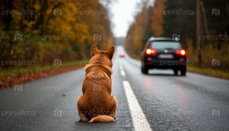 Собака наблюдает, как машина уезжает
