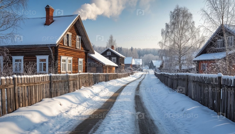 Зимний пейзаж деревни. Генерируется ИИ