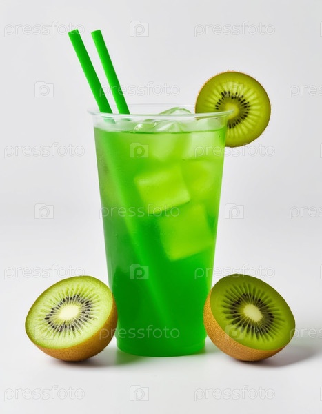 Зеленый лимонад киви в стакане на белом фоне. Сгенерированный ИИ