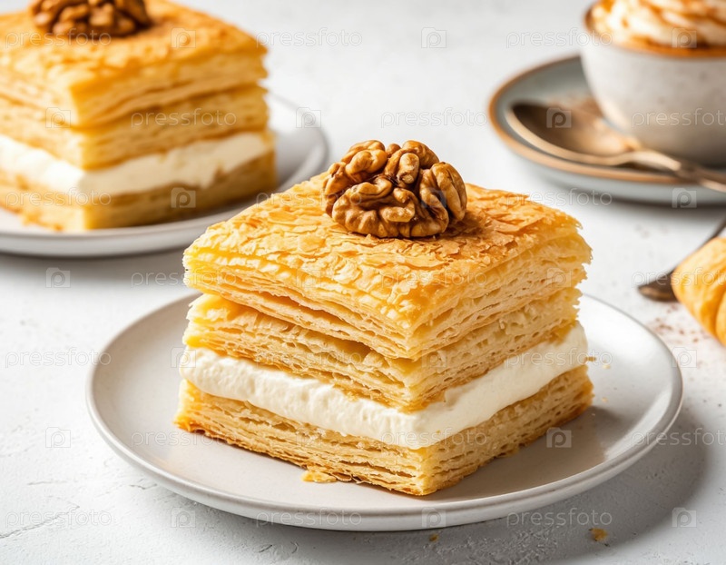 Пышные пирожные со сливками на белом фоне. Сгенерированный ИИ