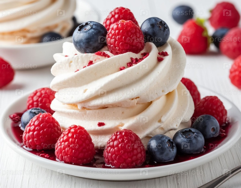 Торт Meringue с ягодами. Сгенерированный ИИ