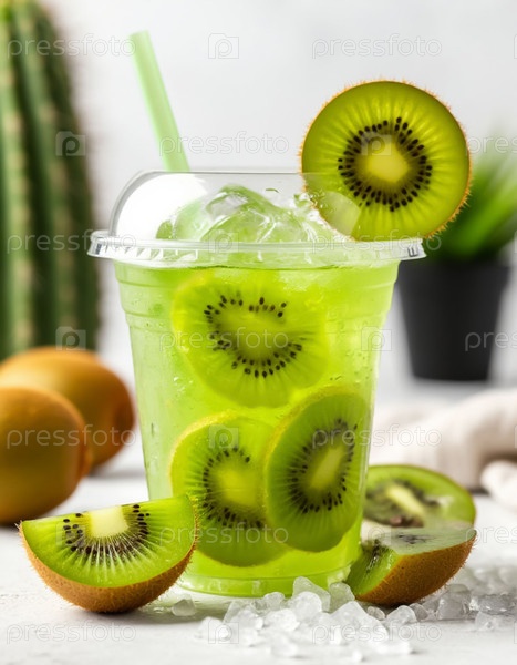 Лимонад киви на белом фоне. Генерируется ИИ