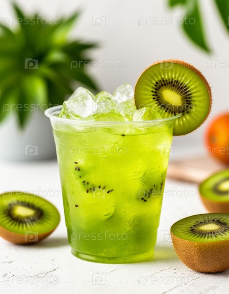 Зеленый лимонад с киви в стакане. Сгенерированный ИИ