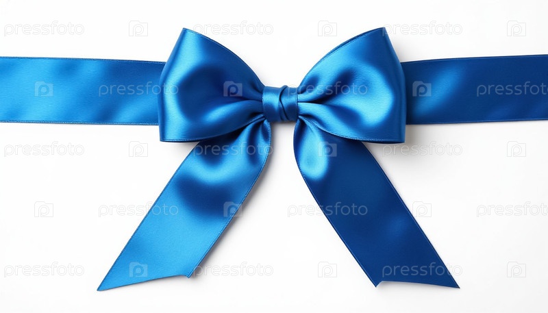 Голубая лента с луком на белом изолированном фоне. Генерируется ИИ