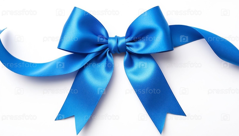 Голубая лента с луком на белом изолированном фоне. Генерируется ИИ