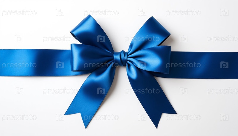 Голубая лента с луком на белом изолированном фоне. Генерируется ИИ