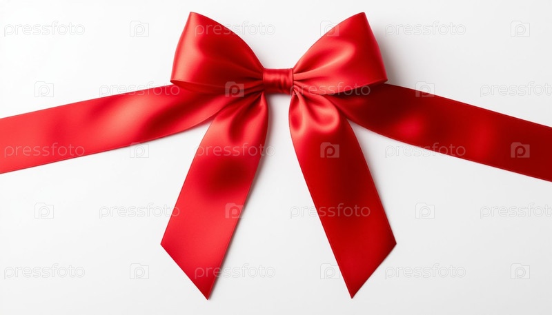 Красная атласная лента с луком на белом фоне. Сгенерированный ИИ