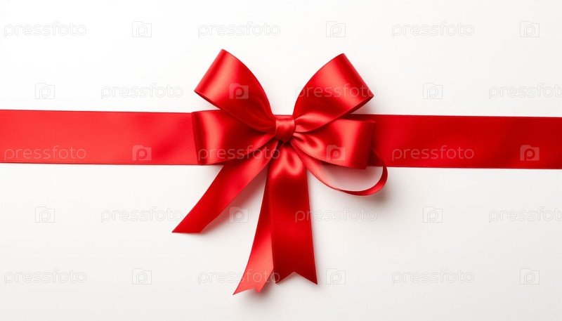 Красная атласная лента с луком на белом фоне. Сгенерированный ИИ
