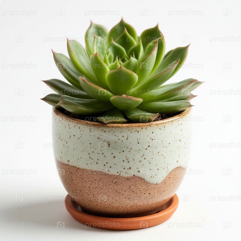 Суккулент в горшке на белом фоне. Сгенерированный ИИ