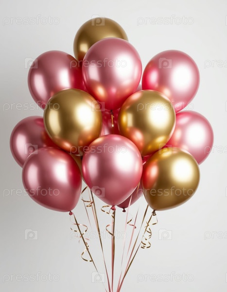 Розовые и золотые шары на белом фоне. Сгенерированный ИИ