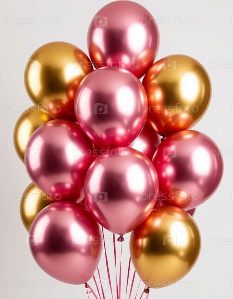 Розовые и золотые шары на белом фоне. Сгенерированный ИИ