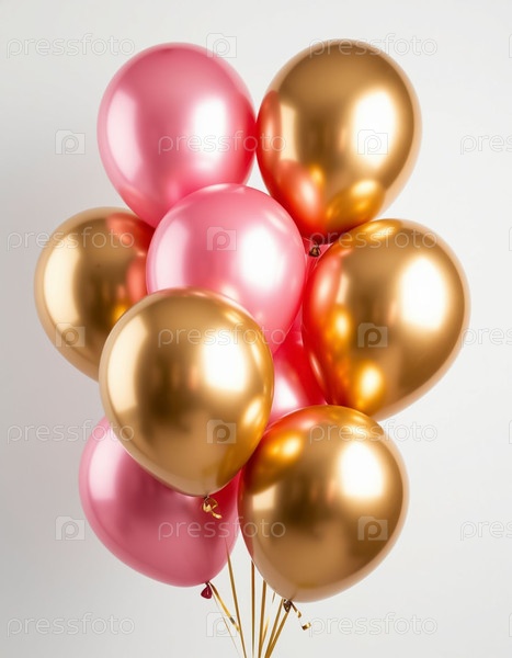 Розовые и золотые шары на белом фоне. Сгенерированный ИИ
