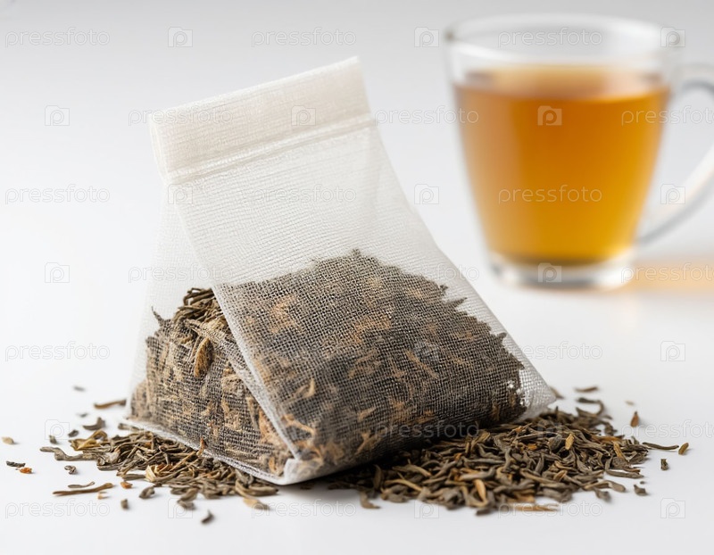 Чайный пакетик на белом фоне. Сгенерированный ИИ