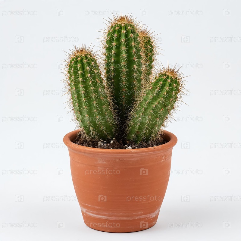 Кактус в цветочном горшке на белом фоне. Генерируется ИИ
