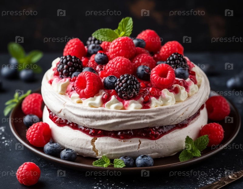 Воздушный торт с сливочным кремом и ягодами. Сгенерированный ИИ