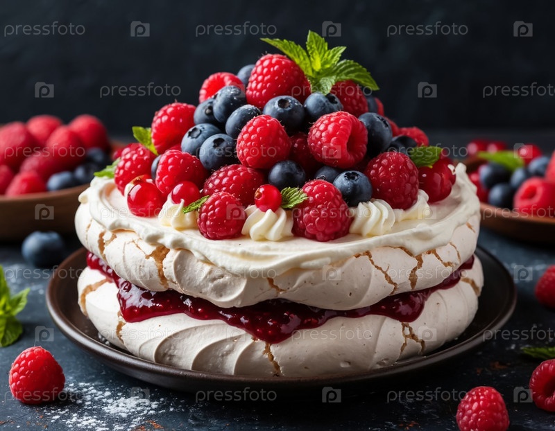 Воздушный торт с сливочным кремом и ягодами. Сгенерированный ИИ