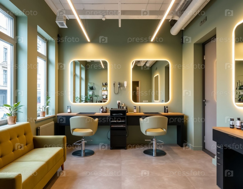 Салон волос в пастельных тонах фисташки. Сгенерированный ИИ