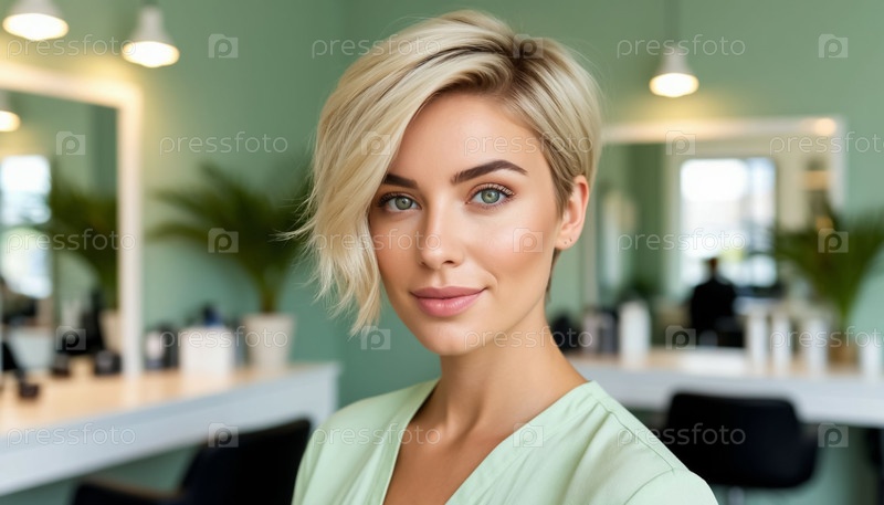 Женщина-парикмахер матер в салоне красоты. Генерируется ИИ