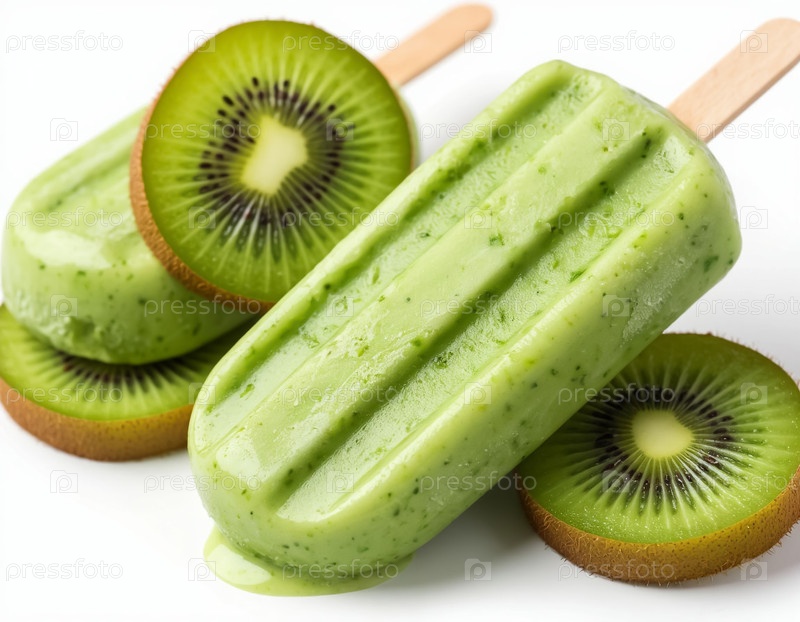 Мороженое Киви на белом фоне. Сгенерированный ИИ