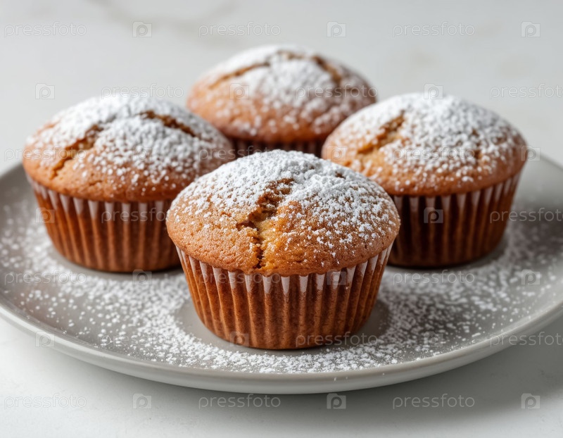 Маффины на белом столе. Сгенерированный ИИ