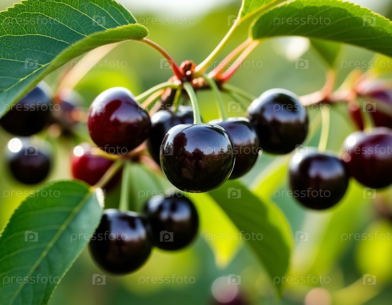 Черная вишня крупным планом. Сгенерированный ИИ