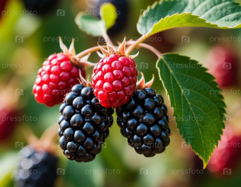 Спелая ежевика крупным планом в саду. Генерируется ИИ