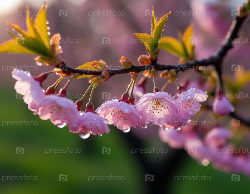 Ветка цветения вишни в саду крупным планом. Сгенерированный ИИ