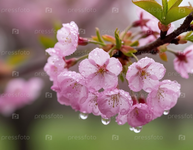 Ветка цветения вишни в саду крупным планом. Сгенерированный ИИ