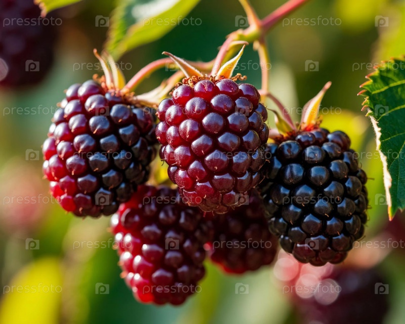 Спелая ежевика крупным планом в саду. Генерируется ИИ