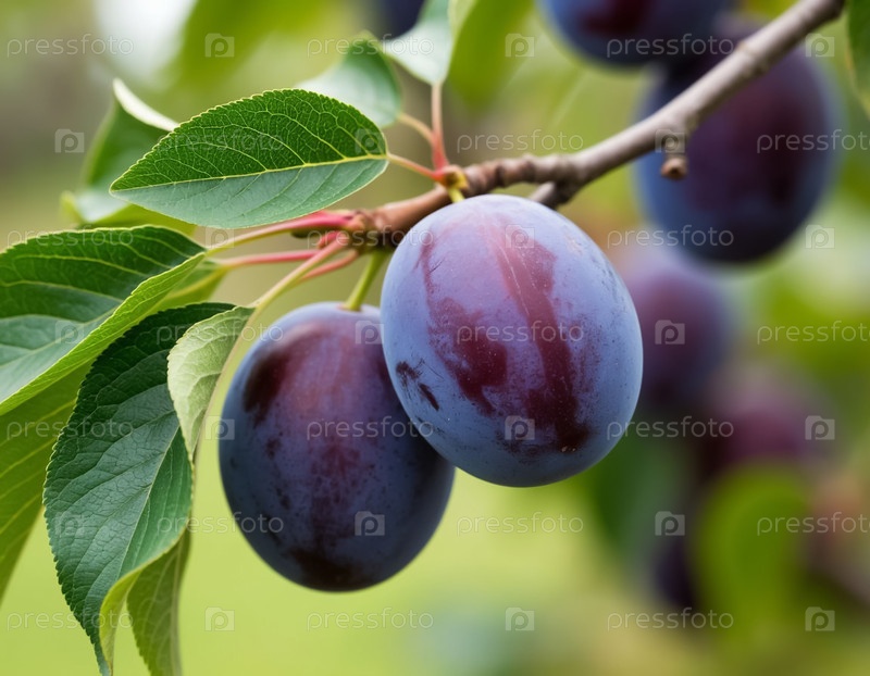 Спелые сливы на ветке в саду. Генерируется ИИ