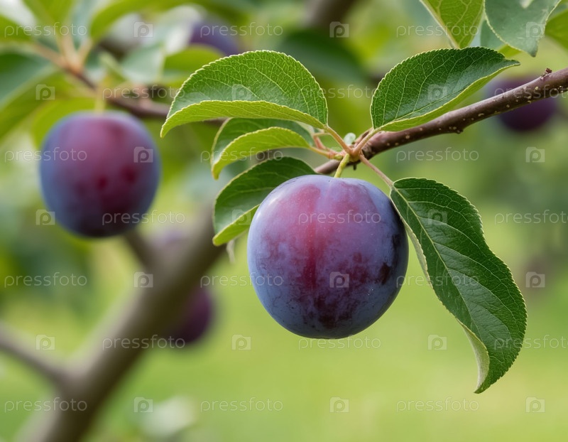 Спелые сливы на ветке в саду. Генерируется ИИ