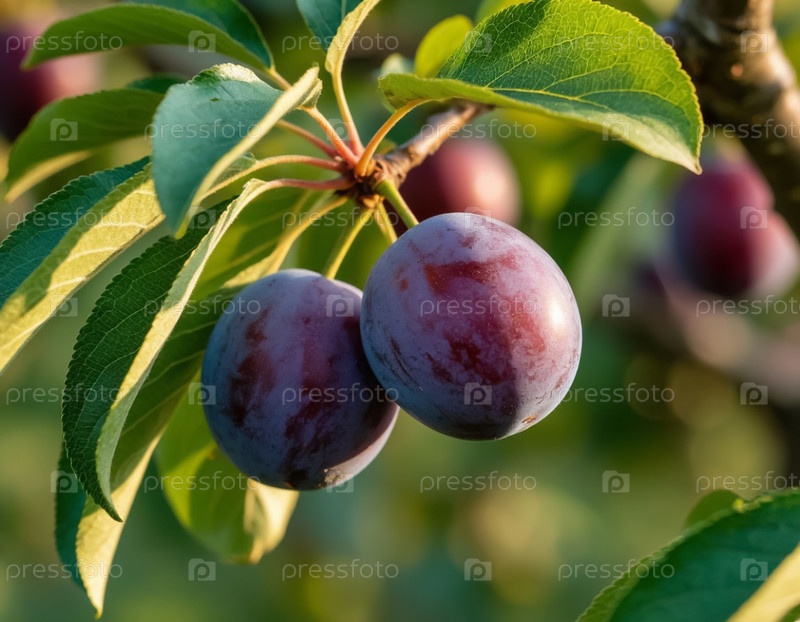Спелые сливы на ветке в саду. Генерируется ИИ