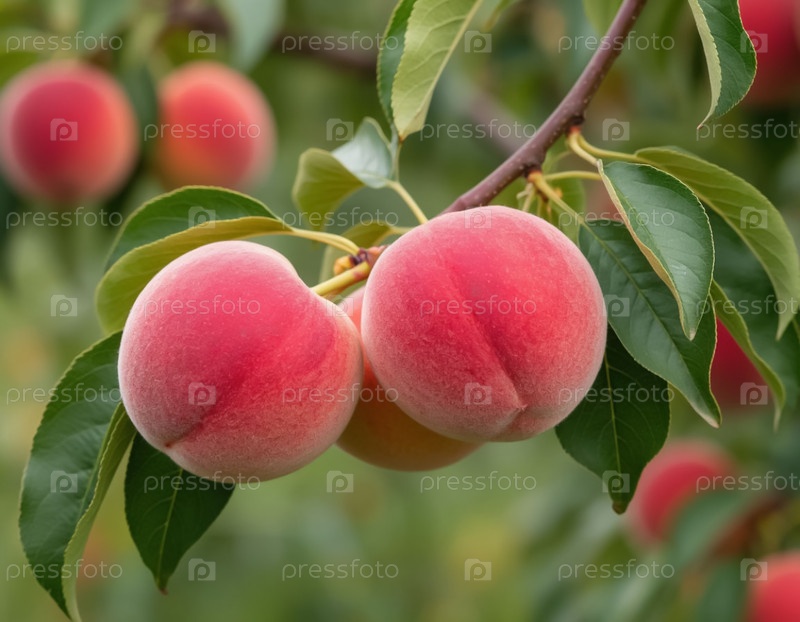 Персики созревают на ветке в саду. Сельское хозяйство и сельское хозяйство. Генерируется ИИ