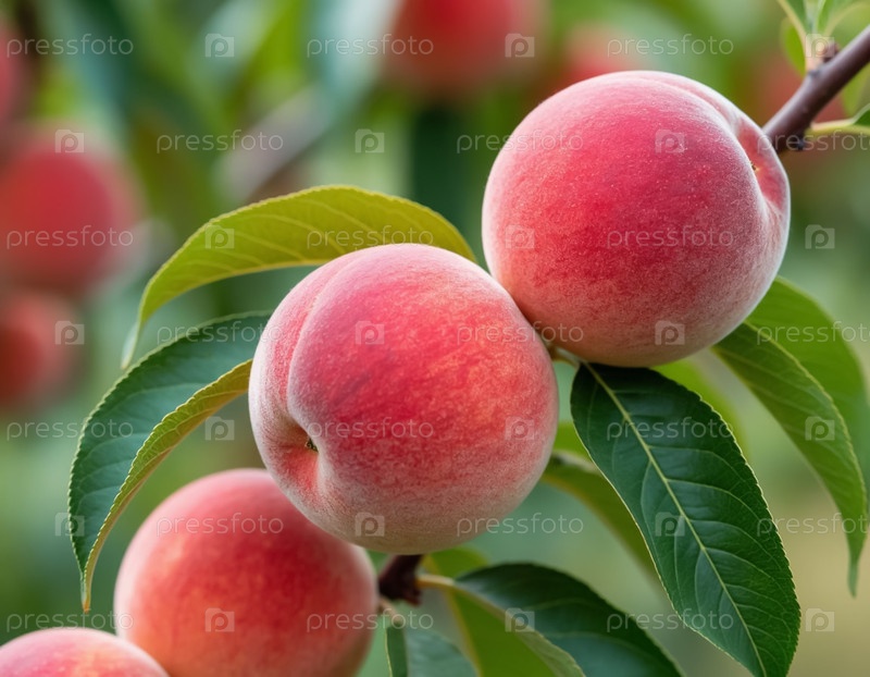Персики созревают на ветке в саду. Сельское хозяйство и сельское хозяйство. Генерируется ИИ