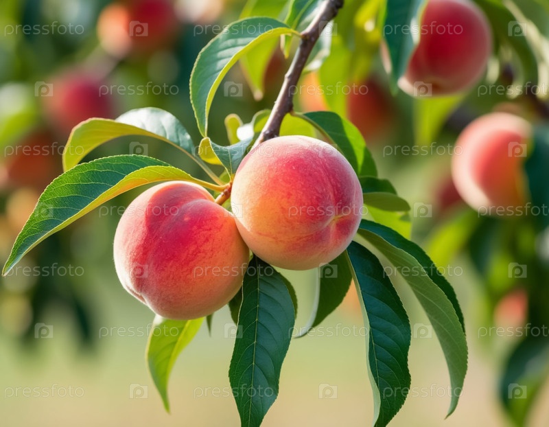 Персики созревают на ветке в саду. Сельское хозяйство и сельское хозяйство. Генерируется ИИ