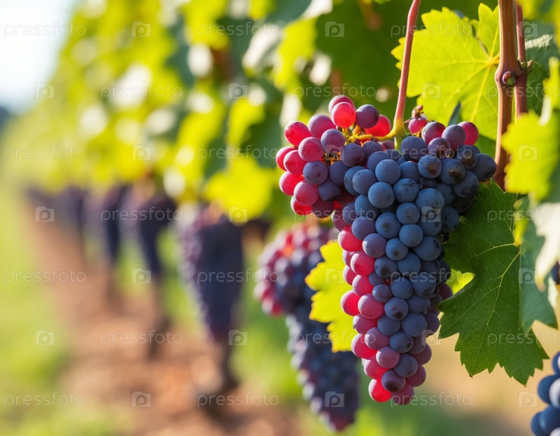 Куча винограда на винограднике крупным планом. Сельское хозяйство и виноделие. Генерируется ИИ