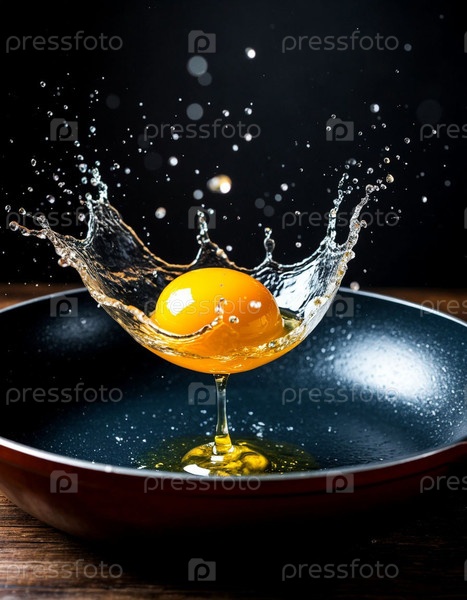 Яйцо динамически разбивается на сковороду. Сгенерированный ИИ