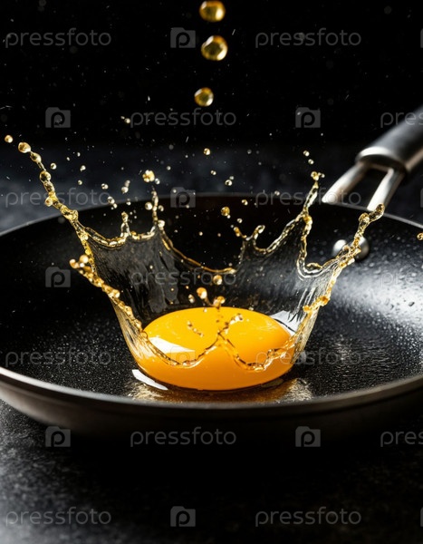 Яйцо динамически разбивается на сковороду. Сгенерированный ИИ