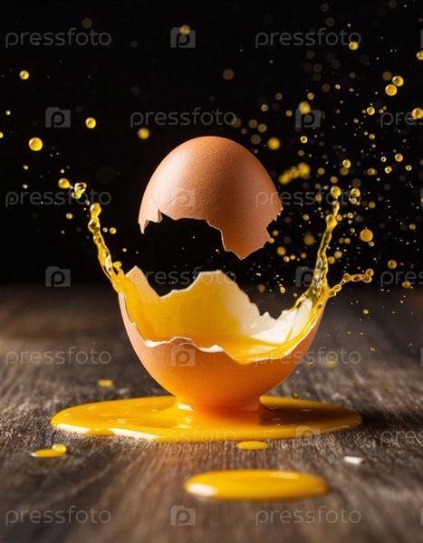 Яйцо динамически ломается в воздухе на черном фоне. Сгенерированный ИИ