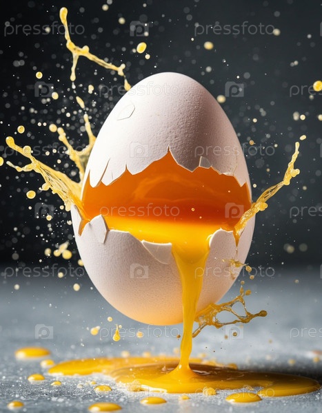 Яйцо динамически ломается в воздухе на черном фоне. Сгенерированный ИИ