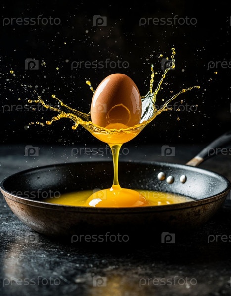 Яйцо динамически разбивается на сковороду. Сгенерированный ИИ
