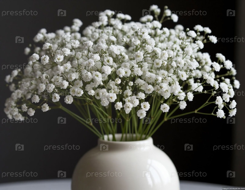 Букет гипсофилы в вазе на темном фоне. Генерируется ИИ