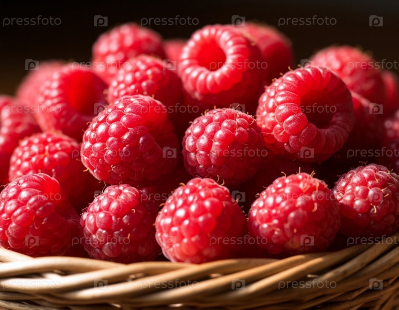 Малина в корзине крупным планом. Сгенерированный ИИ