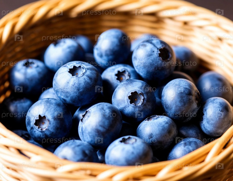 Черника в корзине крупным планом. Сгенерированный ИИ