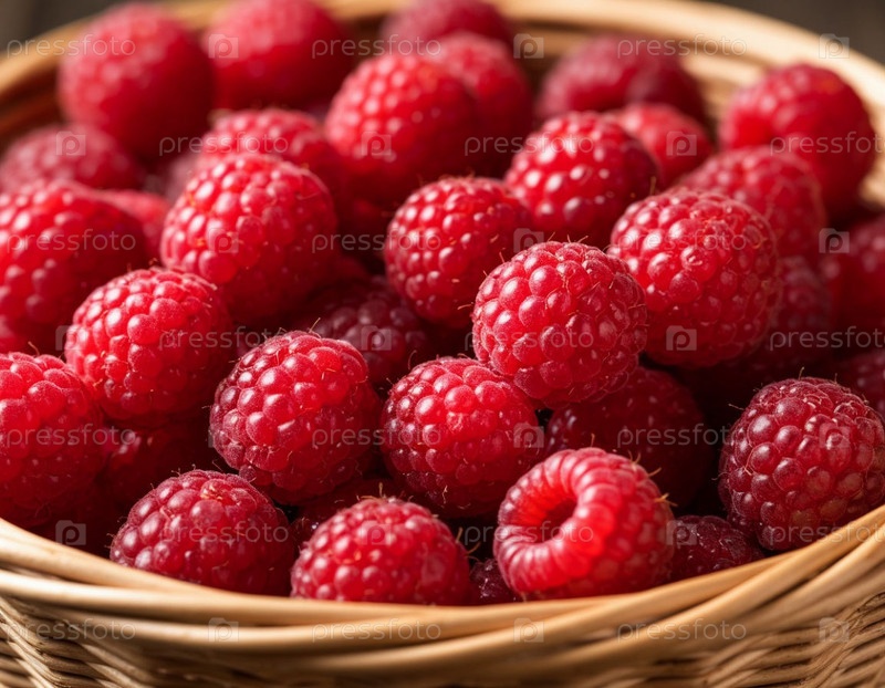 Малина в корзине крупным планом. Сгенерированный ИИ