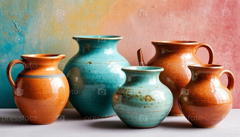 Керамические пастельные кувшины. Сгенерированный ИИ
