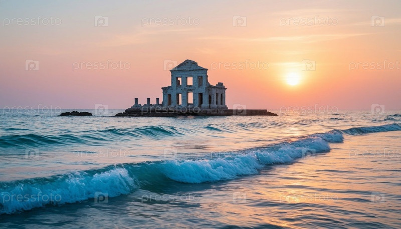 Древние руины выглядывают из моря. Сгенерированный ИИ