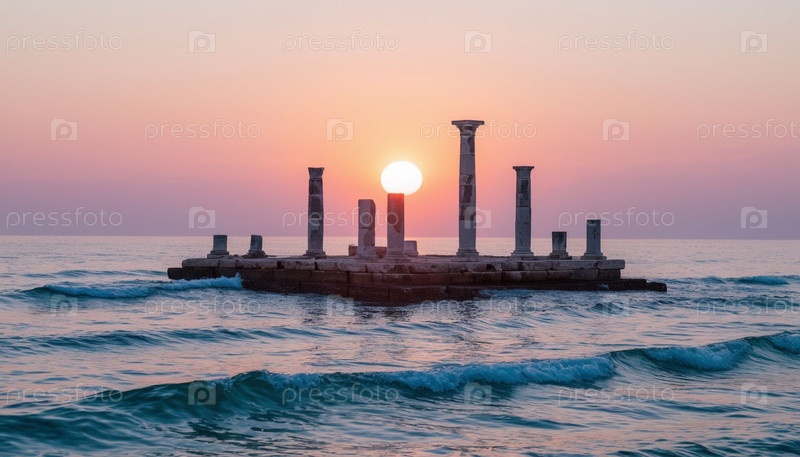 Древние руины выглядывают из моря. Сгенерированный ИИ