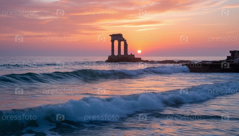 Древние руины выглядывают из моря. Сгенерированный ИИ