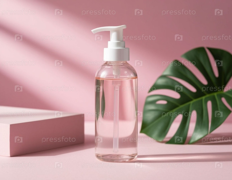 Бутылка с дозатором для мытья на светлом фоне, макет. Сгенерированный ИИ